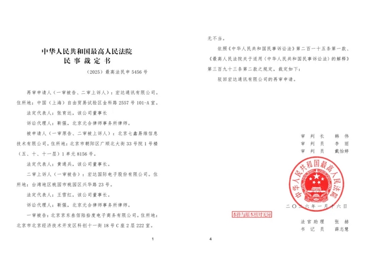此前,北京市高级人民法院已就本案作出二审终审判决,认定宏达通讯有限公司(HTC)及其关联公司制造、销售的相关产品构成对七鑫易维涉案专利的侵权,并依法判令停止侵权及承担相应法律责任。
